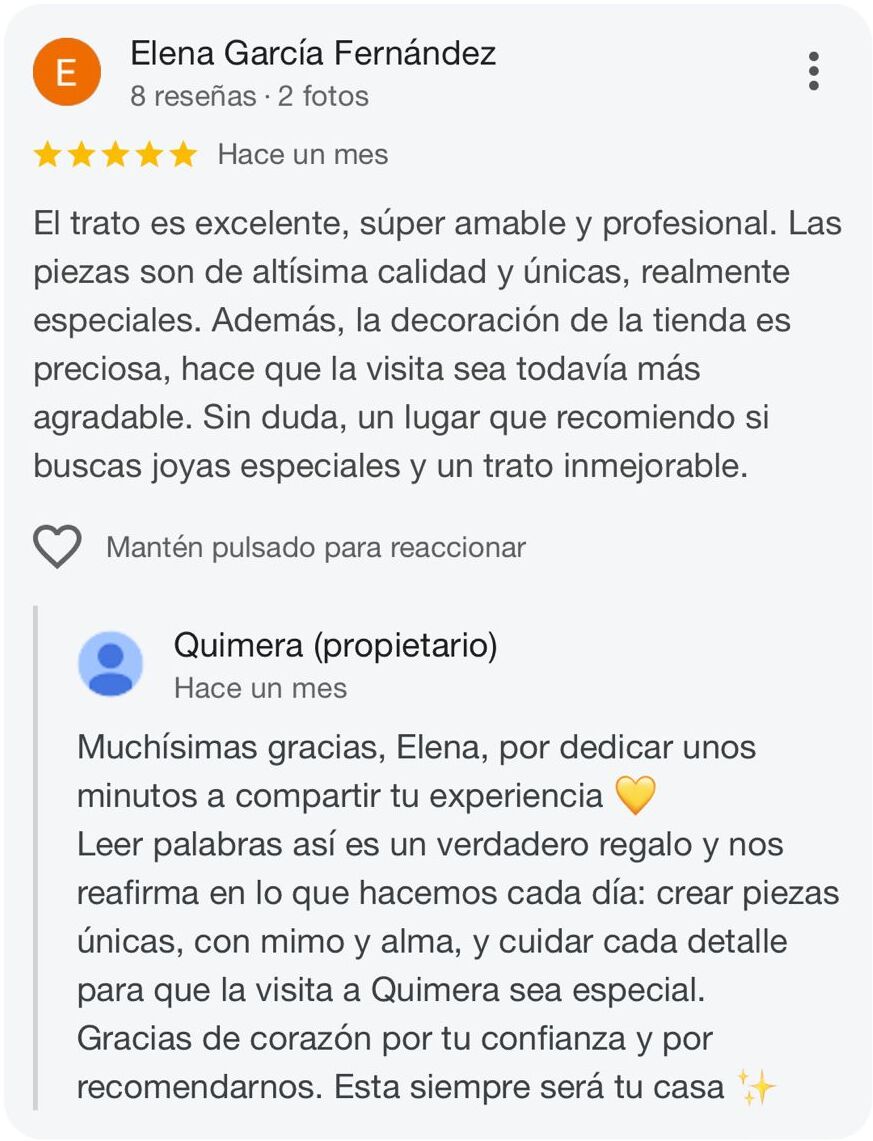 Tras sentirse invisible, Cristina creó su primera pieza como una forma de decirse: “sigo aquí”. Hoy, Quimera Brand es una marca para mujeres que se eligen, que abrazan su historia y encuentran en cada joya un reflejo de quiénes son.