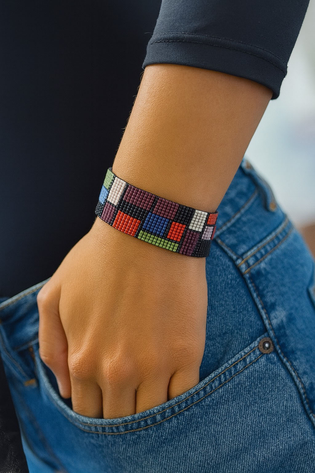 En Quimera, cada pieza con Miyuki se cose una a una, durante horas, con calma y mimo.