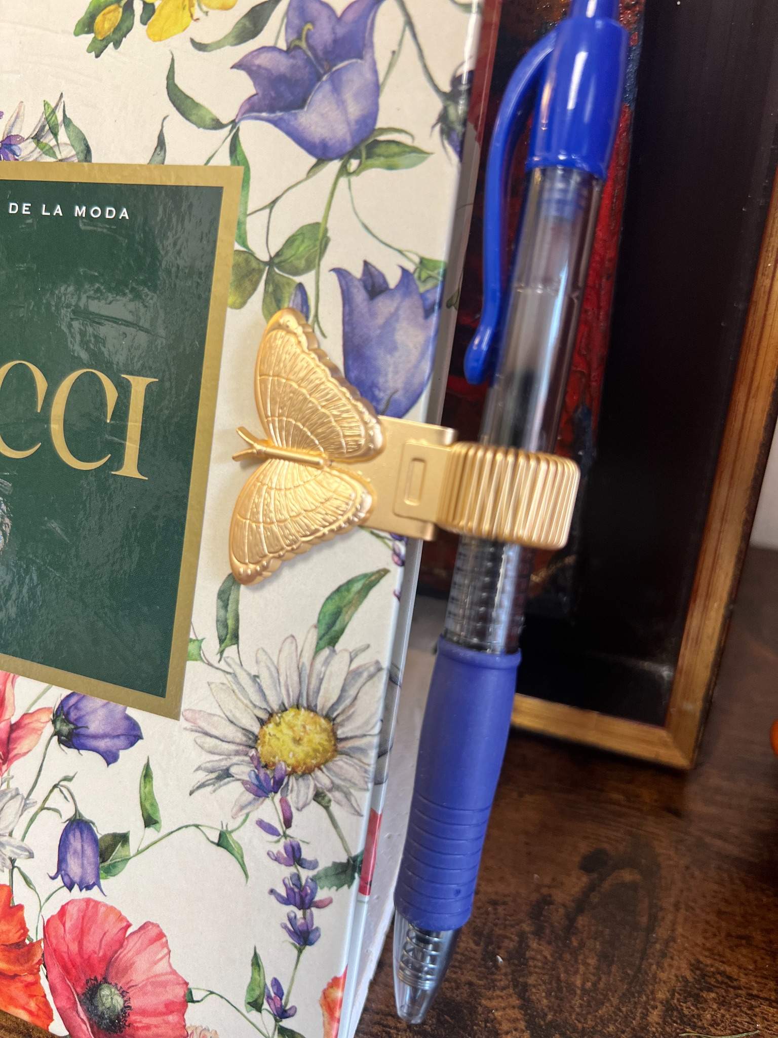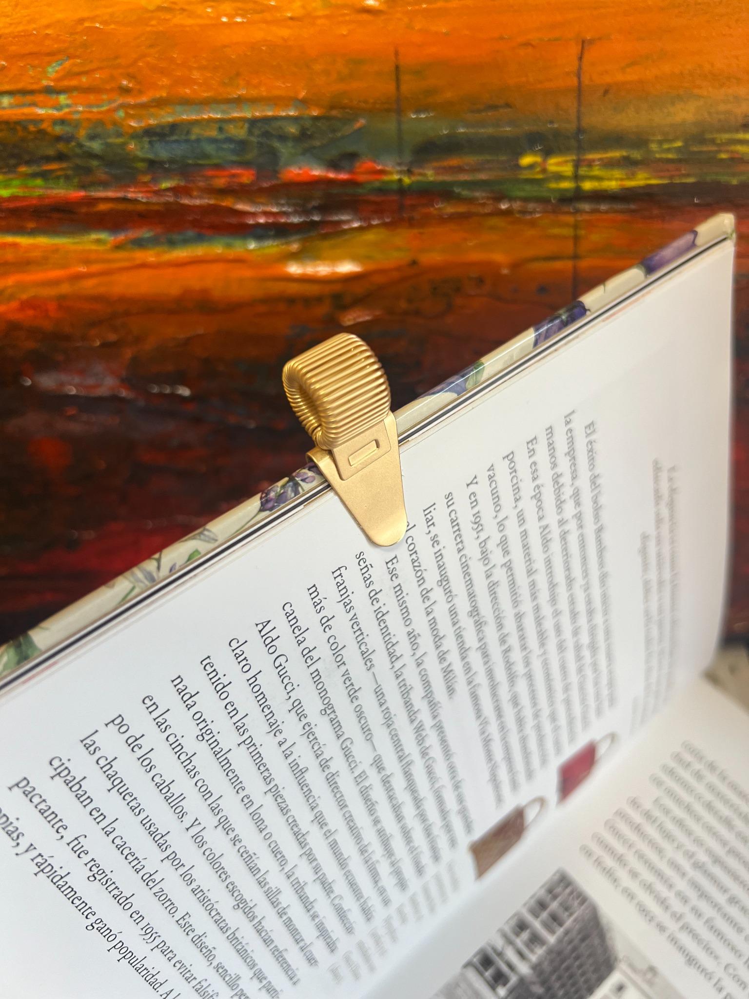 se engancha al libro para marcar la página y además sujeta un bolígrafo o lápiz para tenerlo a mano